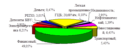 Рис. 4 Структура инвестиционного портфеля НПФ «Республика» в разрезе отраслей