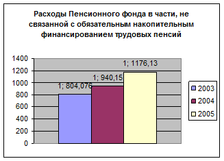 Расходы бюджета Фонда в части, не связанной с обязательным накопительным финансированием трудовых пенсий, в 2005 году определены в сумме 1176,13 млрд. рублей, что составляет 125,1% по сравнению с указанными расходами Фонда, установленными бюджетом на 2004 год и 146,3% по сравнению с 2003 годом.
