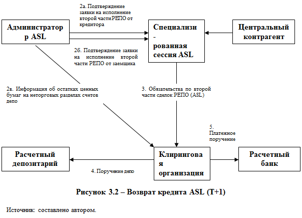 Возврат кредита ASL производится на следующий день (Т + 1) после заключения сделки ASL путем исполнения вторых частей сделок РЕПО.