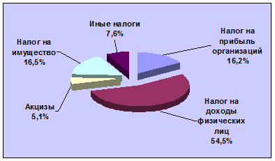 Также видно, что наибольше количество поступлений за анализируемый период в разрезе основных видов налогов можно отметить: по налогу на доходы физических лиц; по налогу на прибыль; по налогу на имущество; по акцизам.
