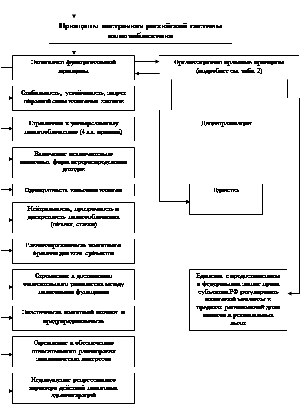 Таб. 1. Принципиальные основы налогообложения и функционирования налоговой системы РФ по состоянию на 1 января 1998 г.