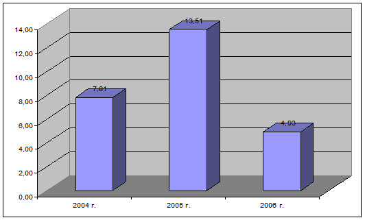 Динамика данного коэффициента за 2004 - 2006 гг. отражена на рис.2.2.1