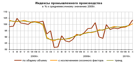 Рис.1.1 Индексы промышленного производства 2008-2010 гг. [1]