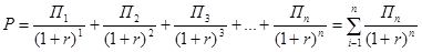 где 1, 2, 3, ., n—годы, в течение которых ожидаются ежегодные доходы в размерах П1П2, П3, ., Пn.