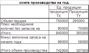 Необходимый объем выпуска продукции определяется как предполагаемый запас готовой продукции на конец периода плюс объем продаж за данный период и минус запас готовой продукции на начало периода.