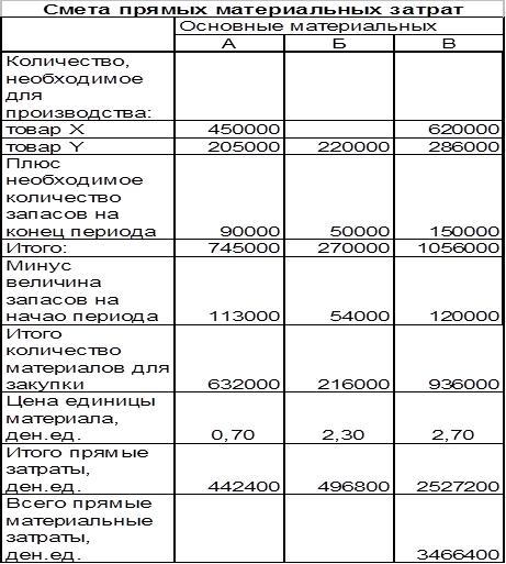 Прямые затраты на сырье и материалы – это затраты на сырье и материалы, из которых производится конечный продукт. Бюджет прямых затрат на материалы составляется на основе производственного бюджета и бюджета продаж.