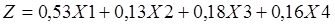 Z = 0,717Х1 + 0,847Х2 + 3,107Х3 + 0,42Х4 + 0,995Х5, (31)