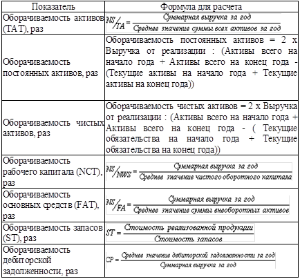 В части оценки оборачиваемости используются следующие показатели (таблица 5).