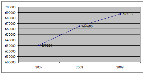 Так, по состоянию на 01.01.2010 численность налогоплательщиков - физических лиц, имеющих ИНН (рис.8) в республике составляет 687 тыс. чел., что на 57 тыс. человек, или на 8,9% больше, чем в 2007 году.
