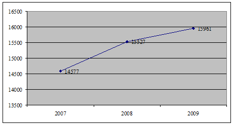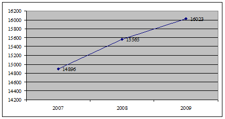 Количество организаций - юридических лиц, состоящих на учете по месту своего нахождения, на 01.01.2010 года составило 16023, что на 1127 организацию, или на 7,6% больше по сравнению с 2007 годом (рис.9).