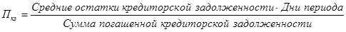 Одним из показателей, используемых для оценки состояния кредиторской задолженности, является средняя продолжительность периода ее погашения (Пкз), которая рассчитывается следующим образом: