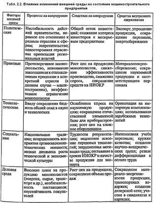 Общий подход к составлению прогноза воздействия динамических параметров внешней среды на процессы в машиностроительном предприятии схематично показан в табл. 2.2.