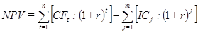 Если проект предполагает не разовую инвестицию, а последовательное инвестирование ресурсов в течении нескольких лет, формула расчета NPV примет следующий вид: