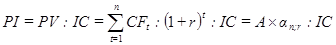 В тех случаях, когда денежный поток поступает равномерно в течении реализации проекта, величину PV определяют так: