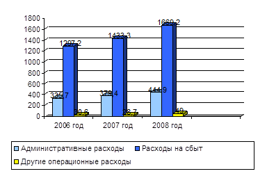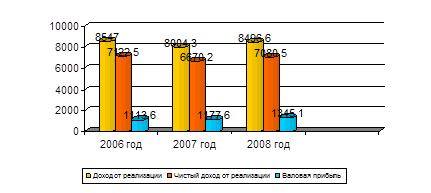 Анализ таблицы показал, что в 2008 году на 4,2 тыс. грн. по сравнению с 2006 годом уменьшился чистый доход от реализации продукции и составил 7080,5 тыс. грн. Валовая прибыль была на уровне 1345,1 тыс. грн., что на 231,5 тыс. грн. больше, чем в 2006 году. Но в то же время в 2008 году наблюдалась тенденция увеличения и многих видов расходов, например, административные затраты возросли на 109,2 тыс. грн. по сравнению с 2006 годом, расходы на сбыт – на 372 тыс. грн. Возможно, это связано с увеличением цен на сырье и материалы, необходимые для производства продукции, заработную плату рабочим, проценты и комиссионные торговым агентам и т.д.