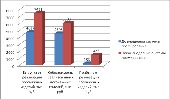 Таким образом, с целью оптимизации затрат на производство погонажных изделий было предложено наращивать объемы их производства и реализации, так как в настоящее время существует значительный платежеспособный спрос на данный вид продукции ООО «Партнерснабкомплект». Наращивать объемы производства предприятию предложено за счет роста производительности труда путем сокращения потерь рабочего времени. Для реализации данного мероприятия предложено внедрить систему премирования и депремирования сотрудников за исполнение трудовой дисциплины. В настоящее время работники ООО «Партнерснабкомплект» получают фиксированную заработную плату, состоящую из оклада и премии, независимо от рабочего времени, которое они проработали, и независимо от качества и своевременности выполненных ими работ. Предлагаемые системы премирования и депремирования работников позволят предприятию повысить заинтересованность работников в качестве и своевременности выполнения должностных обязанностей, повысить трудовую дисциплину, увеличить фонд рабочего времени работников. Система премирования выгодна как для работников предприятия, потому что увеличивается фонд оплаты труда на 49,67 тыс.руб., так и для самого предприятия, так как уровень прибыли увеличивается на 1244,19 тыс.руб. за счет роста выручки от реализации на 2744,1 тыс.руб. и снижения уровня затрат на рубль выручки на 0,15 руб.