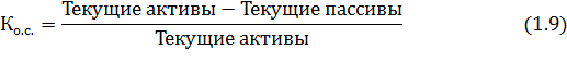 Коэффициент обеспеченности собственными оборотными средствами (Ко. с.) определяется по формуле: