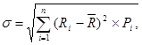 в) среднеквадратическое отклонение. Этот показатель является одним из наиболее распространенных при оценке уровня индивидуального риска, так же как и дисперсия определяющий степень колеблемости и построенный на ее основе. Он рассчитывается по следующей формуле: