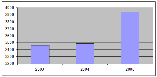 Структура заемных источников за прошедшие три года, существенно не изменилась, за исключением, того, что предприятие в 2007 году получило долгосрочный кредит, который составил 1500 тыс.грн. И соответственно занимал 1,25% от суммы капитала предприятия. В то же время краткосрочная задолженность уменьшилась в 2007 году в 3 раза с 1800 тыс.грн. до 600 тыс.грн. Эти данные свидетельствуют о том, что уменьшение краткосрочного кредитования было восполнено получением долгосрочного кредита, а также некоторым повышением товарного кредита. Задолженность по расчетам занимает достаточно большое место в структуре капитала предприятия и составила в 2005 году 3461 тыс.грн. (2,91%), в 2006 году 3487 тыс.грн. (2,92%), в 2007 году 3939 тыс.грн. (3,26%). Данная тенденция носит негативных характер, так как увеличение данного источника вредит имиджу предприятия и его отношению с контрагентами.