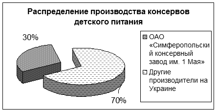 В настоящее время завод является единственным в Крыму предприятием по выпуску консервов детского питания и вырабатывает до 30% от общего выпуска консервов детского питания на Украине (рис.1).