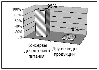 За последние 10 лет завод практически полностью перешел на производство детского питания. Его доля составляет 95% от общего объема производимой продукция (рис.2.).