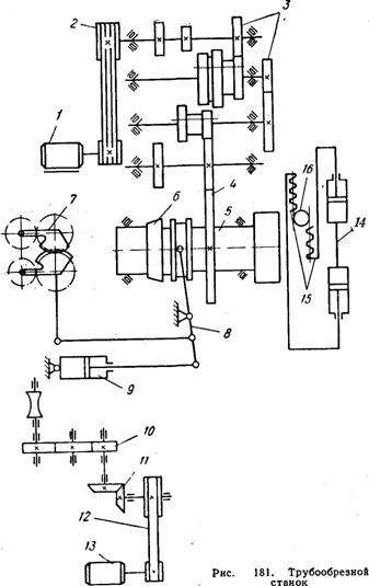 На рисунке представлена кинематическая схема одного из трубоотрезных станков.