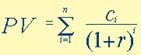 PV - дисконтированная стоимость, то есть сегодняшняя стоимость будущих денежных потоков (через квартал, год, несколько лет);