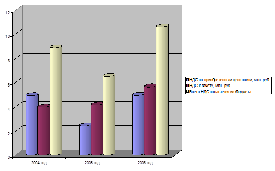 В силу специфики лизинговой компании немалую долю оборотных средств занимает НДС по приобретенным ценностям к возмещению. Связано это в первую очередь с самой лизинговой сделкой - лизинг является одним из видов инвестирования, а, следовательно, при приобретении имущества лизинговой компании полагается возмещение уплаченного НДС. Показатели за 2004 - 2006 г. приведены в таблице №2.