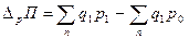 где q1 – объем продаж отчетного года в натуральном выражении, p0 – цена товаров базисного года, n количество видов реализованной товаров