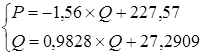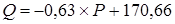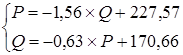 2. Найдём уравнение зависимости объёма от цены