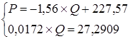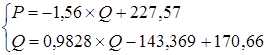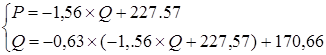 Таким образом, были найдены оптимальные уравнения цены и объёма. Координаты точки пересечения полученных прямых - оптимальный объем производства и оптимальная цена на продукцию предприятия.