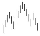 Вершина «башня» является моделью разворота на вершине. Вначале появляется длинная белая свеча (или серия белых свечей), затем повышение рынка замедляется и начинается снижение. Вершина «башня» считается сформированной после появления одной или нескольких длинных черных свечей.