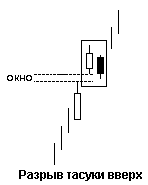 После резкого повышения цены в течение одной, двух торговых сессий рынок на время приостанавливается. На рынке начинается консолидация, в результате которой образуется группа свечей с маленькими телами, что свидетельствует о том, что рынок находится в нерешительности. Затем цена открытия образует ценовой разрыв вверх. Эта модель называется «игра на разрыве от ценовых максимумов». Ее название связано с тем, что цены колеблются вблизи недавнего максимума, а затем образуют ценовой разрыв вверх.
