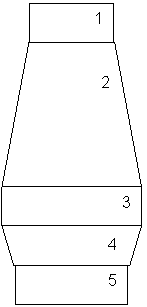Внутреннее очертание вертикального разреза доменной печи называют ее профилем (см. рис1), в котором различают колошник 1, шахту 2, распар 3, заплечики 4 и горн 5. Для современных больших печей полезная высота равна 29 – 32 м. Средний объем печей 1000 – 3000 м3, самая большая печь объемом 5000 м3.