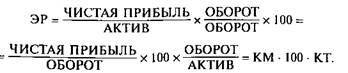 Расчет формулы: берем показатель чистой рентабельности {Чистая прибыль/Актив х 100) и преобразовываем его, умножая на {Оборот/Оборот** = I).