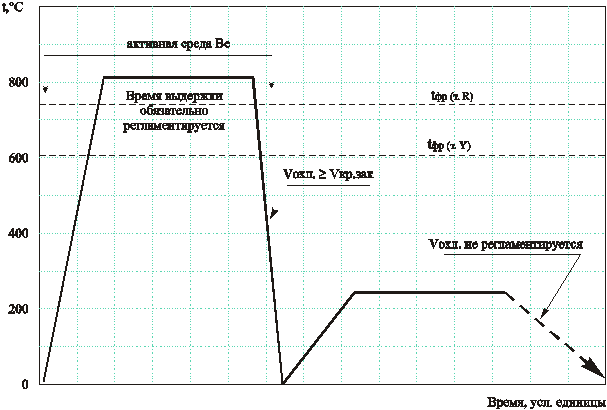 Рис. 11 Схема-график режима химико-термической обработки с закалкой на пересыщенный твердый раствор сплава Сu+ 2,3 % Ве.