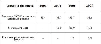 За 1995—2009 гг. значительно увеличился охват бюджета за счет поэтапного включения в него внебюджетных средств государства (таблица 2.2). В 2004 г. в бюджет включен Фонд социальной защиты населения (ФСЗН) Министерства труда и социальной защиты, в 2005 г. — инновационные фонды, в 2006 г., с принятием Закона о бюджете, — фонд развития строительной науки.