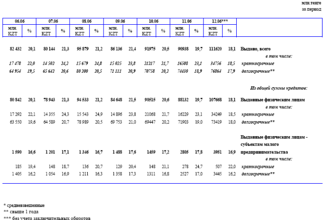 Примечание – Источник: Статистический бюллетень Национального Банка Республики Казахстан №12 декабрь 2006г. С.-79
