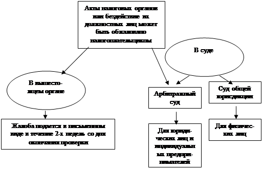 Акт проверки передается налогоплательщику или его представителю. Налогоплательщик может представить свои возражения, которые должны быть обоснованы и документально подтверждены. Причем обжалование действий налоговых органов может осуществляться в вышестоящем налоговом органе и/или в суде (см. рис.12).