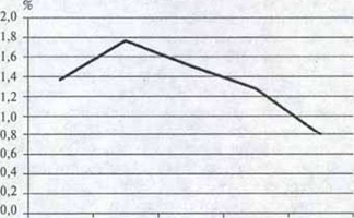 о постепенном снижении их объемов в 2009 - 2010гг., в том числе в связи с окончанием сроков реализации принятых федеральных целевых программ (например, федеральной целевой программы Модернизация транспортной системы России[1]). Однако анализ динамики доли расходов федерального бюджета на финансирование ФАИП по отношению к валовому внутреннему продукту в 2006 - 2010гг. свидетельствует о ее снижении с 1,76% в 2007г. до 0,80% в 2010г., т.е. в 1,31 раза (рис.2)