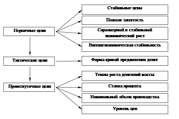 Инструментами денежно-кредитной политики являются законы, распоряжения, предписания, указы и директивы, касающиеся денежно-кредитной политики. Цели денежно-кредитной политики представлены на рис. 1. [1, с. 278].