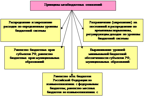 Межбюджетные отношения – это отношения между органами государственной власти Российской Федерации, органами государственной власти субъектов Российской Федерации и органами местного самоуправления. В основе таких отношений – законодательное разграничение расходов и доходов на постоянной основе, которое предопределяет качественные особенности механизма межбюджетного регулирования. Межбюджетные отношения основываются на принципах, которые представлены на рисунке 2.