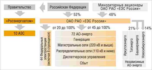 5. в рамках нашего исследования мы провели анализ проведения реорганизации ОАО РАО «ЕЭС России», в рамках которого мы выдели существовавшею структуру компании и целевую структуру, выделили основные рекомендации по дальнейшей реорганизации. В рамках перспективного развития компании необходимо отметить развитие государственно-частных партнерских отношений.