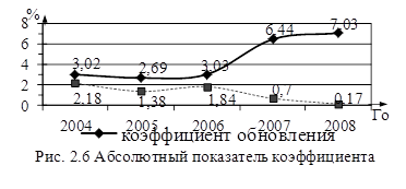 Анализируя график рис. 2.6 необходимо отметить, что коэффициент обновления основных средств повышается, а коэффициент выбытия наоборот уменьшается, то есть предприятие больше обновляет основные фонды, чем придает их к списанию. Все это свидетельствует об эффективном использовании основных средств.
