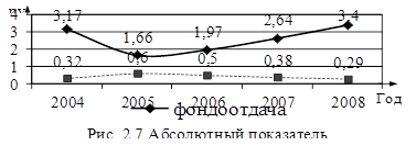 Абсолютный показатель фондоотдачи и фондоемкости представлены на рис. 2.7 на основании показателей из таблицы 2.3.