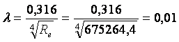 Для того, чтобы найти λ, сначала необходимо вычислить число Рейнольдса, по формуле: