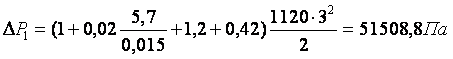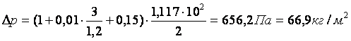 W1 - скорость газа на входе в аппарат, примем W1=15 м/с.