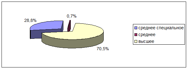 Диаграмма образовательного уровня сотрудников ОУК, (в %)