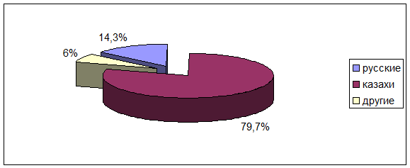 В областных управлениях казначейства работают представители 25 национальностей, большинство составляют казахи и русские, удельный вес которых 79,7 и 14,3 процентов соответственно.