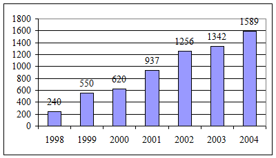 Первыми объектами, закупленными СССР по договору лизинга – в рамках знаменитых поставок военной техники по договору ленд-лиза во время Второй мировой войны, – являются самолеты. На территории России лизинг использовался в советское время для приобретения морских и воздушных судов через внешнеэкономические операции. Но объемы этих операций были незначительны. Отправной точкой развития лизинга в нашей стране можно считать начало 70-х годов, с появлением первых коммерческих лизинговых компаний. В большинстве случаев они были образованы коммерческими банками. К середине 90-х догов, оценив потенциальные возможности и преимущества лизинга для экономического развития страны, Правительство РФ приняло ряд постановлений, направленных на поддержку развития лизинговых отношений. В результате на рынке стали появляться новые компании, в том числе крупные, учрежденные финансово-промышленными группами для технического переоснащения входящих в их состав предприятий. Динамики роста числа лизинговых компаний представлена на рисунке 1.2.